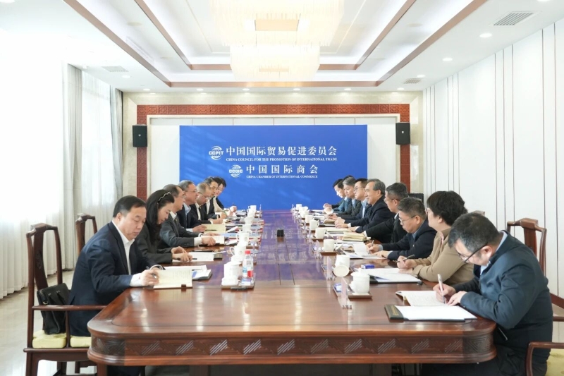 倪真與中國貿促會黨組書記、會長任鴻斌會談
